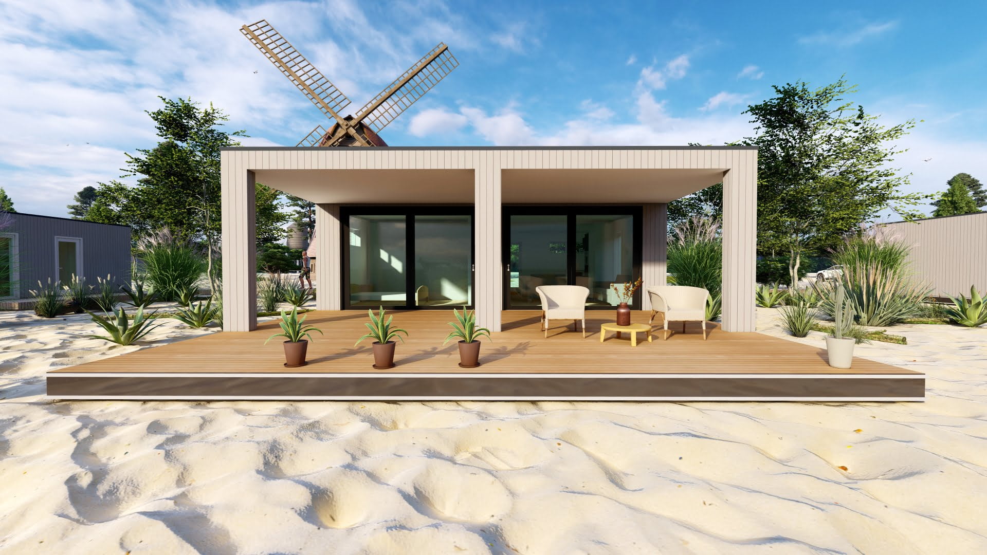 Van deze Beach Villa’s zijn in totaal 4 beschikbaar in twee verschillende uitvoeringen. Woning 01 heeft een verlengde veranda, woning 02 heeft dit niet. Ook is de indeling binnen iets anders, zie plattegrond. Deze woningen hebben op dit moment nog geen vloer, deze wordt bij aankoop naar wens ingevuld. Ook overige aanpassingen en afwerkingen zijn mogelijk in overleg en tegen een eventuele meerprijs.
